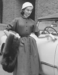 En Estados Unidos, la década de los 50 conllevó muchos cambios en diferentes ámbitos, desde una gran evolución industrial, la recuperación económica y el inicio de un consumismo cada vez más voraz, hasta nuevas tendencias en moda, música y cine, y una distancia cada vez mayor en el pensamiento de los jóvenes respecto a su generación anterior.En estos años, en las mujeres se les dio mucha importancia a los accesorios como los sombreros, las carteras, los tocados, los guantes y los collares y pendientes de perlas. Todos ellos eran el complemento indispensable de todo atuendo femenino. La ropa de 1950 se convierte en ropa elegante, extravagante y con mucho estilo. La figura femenina vuelve a ser resaltada en sus curvas a través del uso de los corsés, que desde los 20 hasta los 40 habían caído en desuso. El estilo con respecto a los peinados también cambia. A pesar de que el pelo corto se sigue usando, el pelo largo se pone de moda. Esto se debe a que la moda de los 50 se concentraba en hacer que la mujer luzca más sensual. Además, comenzaron con la utilización de maquillajes delicados, debido al nuevo icono indispensable de esta época: Marilyn Monroe, que se convirtió en un modelo a seguir con su belleza, moda y sensualidad representante a esos años.